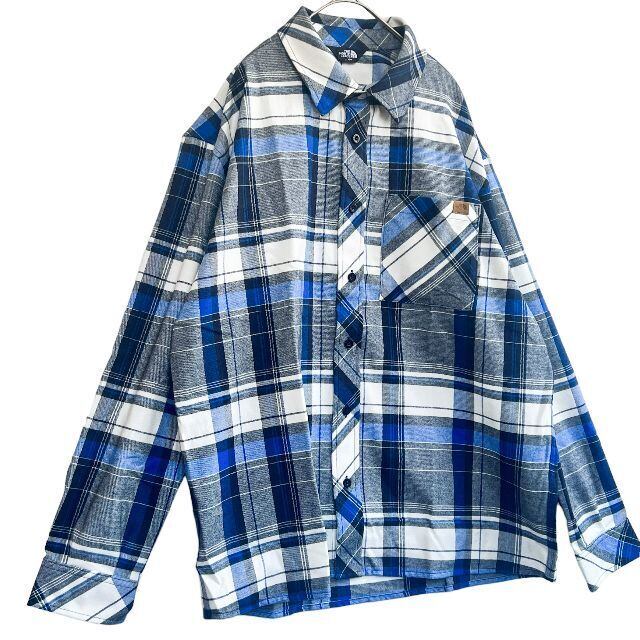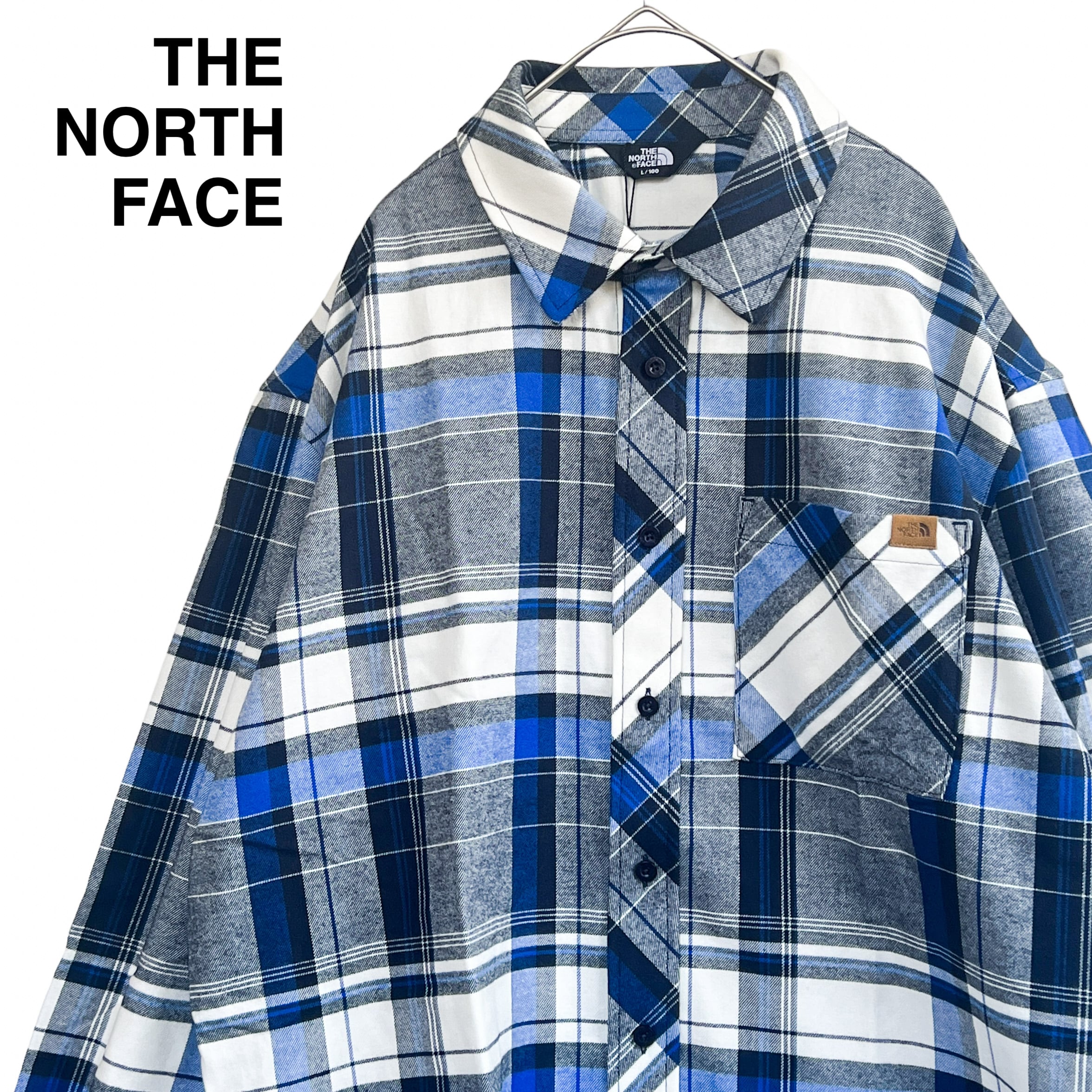 THE NORTH FACE ザ・ノースフェイス 大人おしゃれブランド ブルー メンズ レディース 長袖フランネルチェックシャツ 青 マルチコーデ スエードロゴ