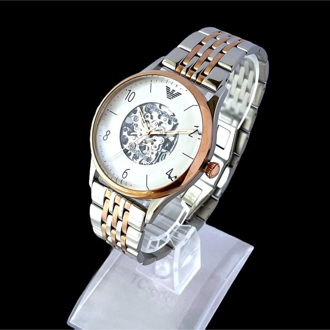 メンズ腕時計 自動巻き EMPORIO ARMANI エンポリオアルマーニ スケルトン ゴールド 白 シルバー 並行輸入品