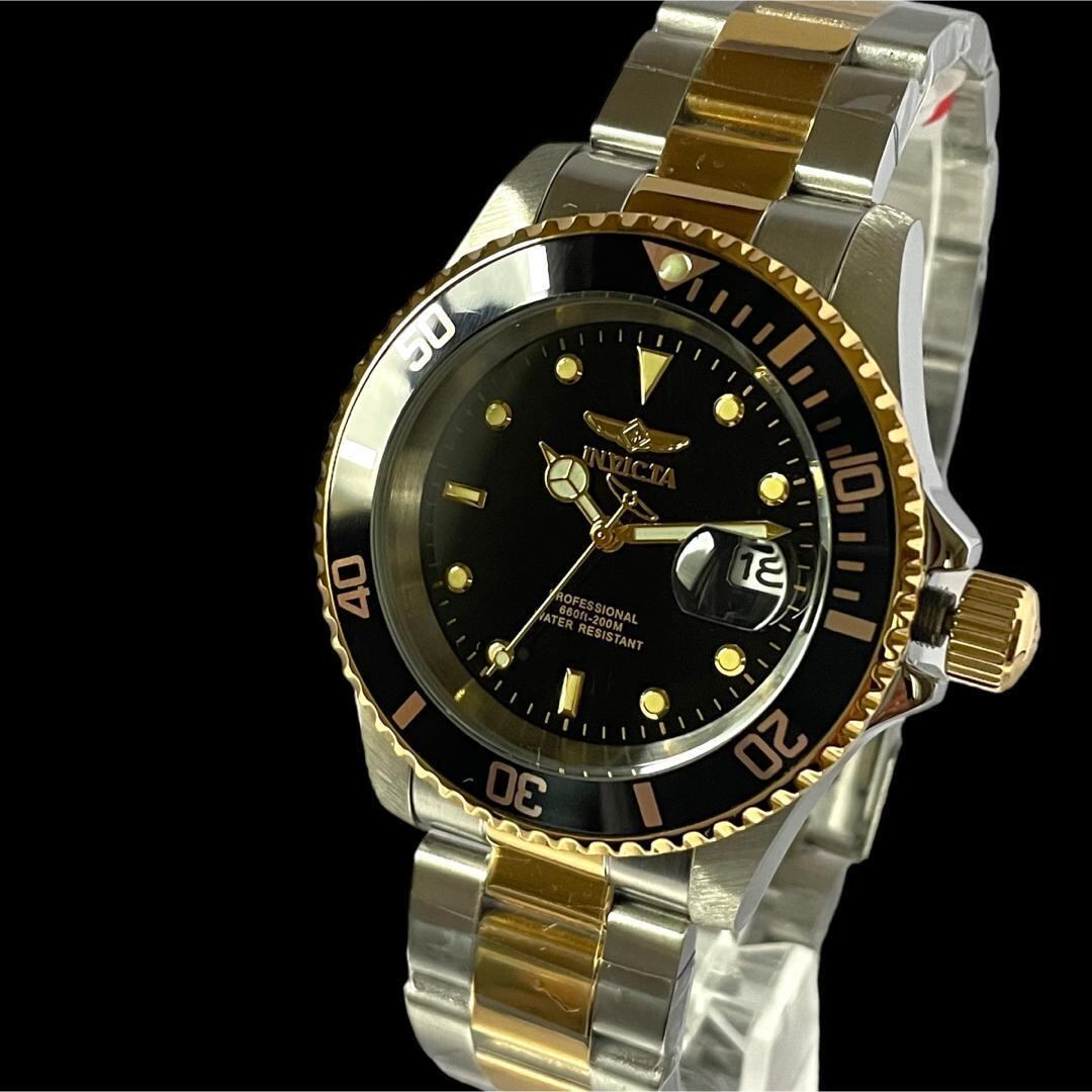 メンズ腕時計 200M防水 INVICTA インビクタ Pro Diver プロダイバー 黒 ゴールドシルバー ツートンカラー 並行輸入品