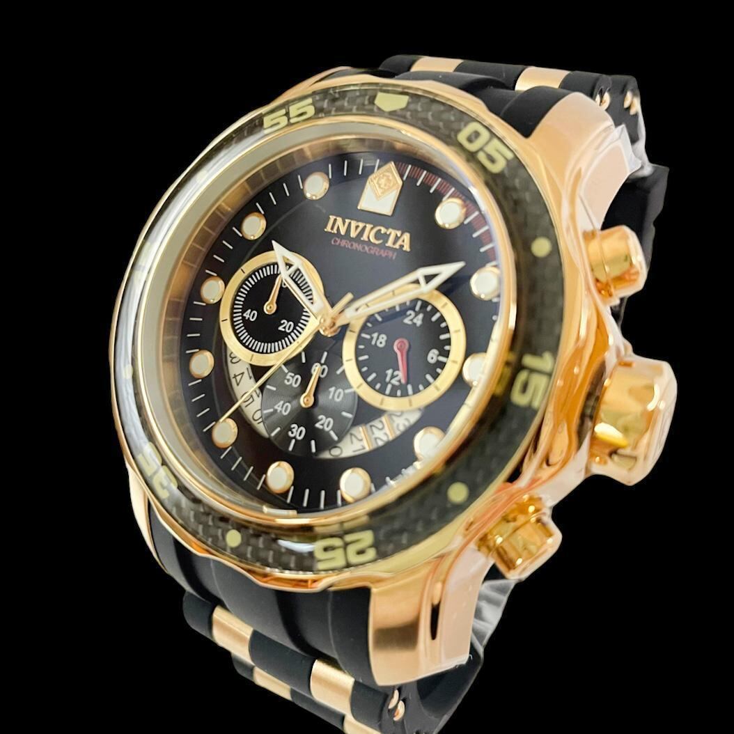 腕時計 メンズ 黒ゴールド デカくてゴツい インビクタ クォーツ カジュアル 100M防水 アナログ ブランド 並行輸入品