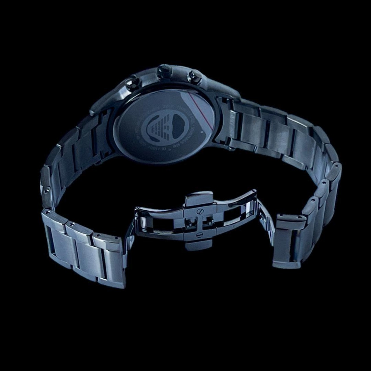 高級感あふれるオールブラックのデザインが魅力の「EMPORIO ARMANI」の腕時計です。