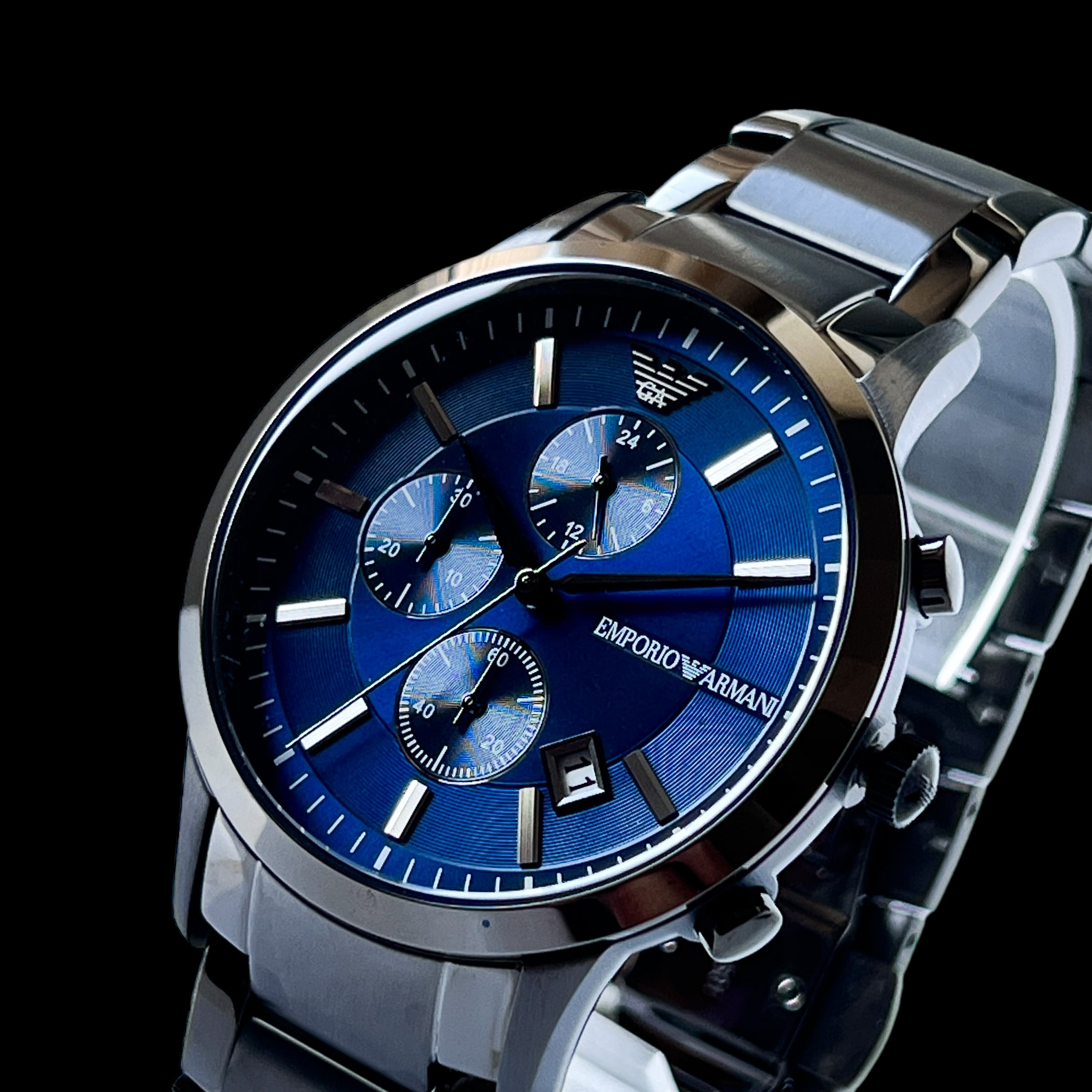 腕時計 メンズ おしゃれ エンポリオアルマーニ ディープブルー ガンメタ ビジネス クロノグラフ アナログ 高級ブランド 並行輸入品